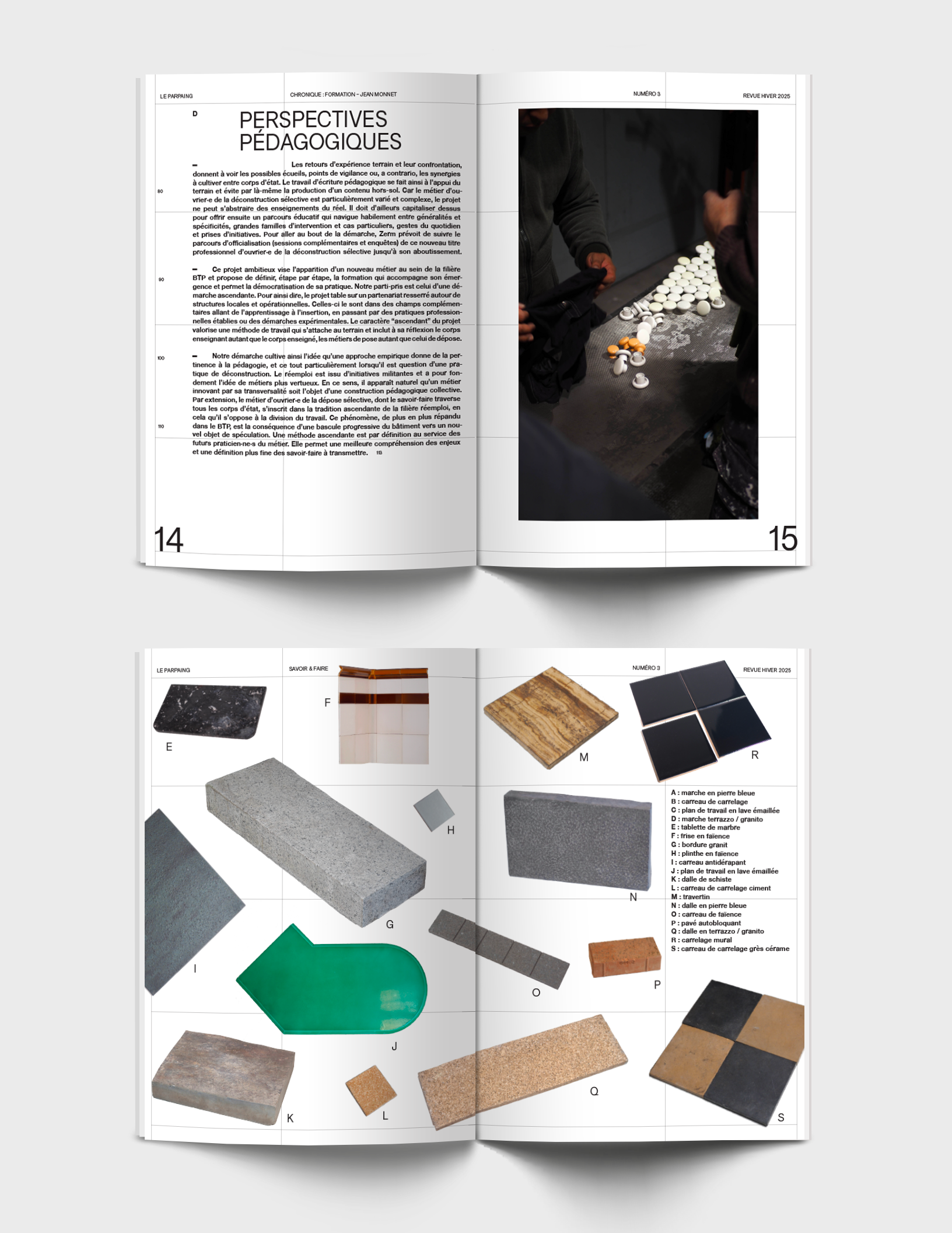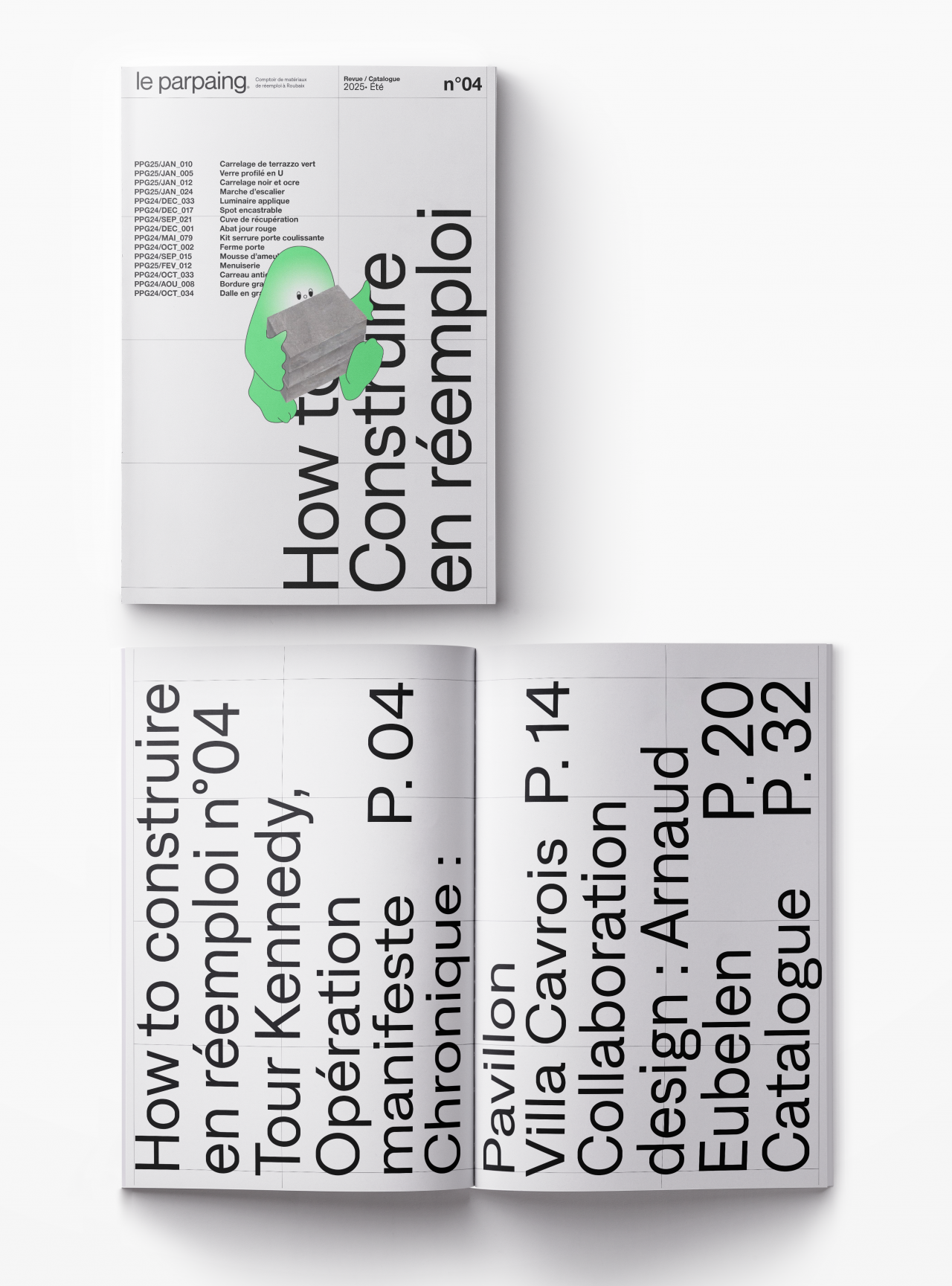 À la manière d’un “How To”, cette édition s’approche d’un guide pratique à destination de toute personne investie dans un projet de construction et souhaitant y intégrer une logique de réemploi. La revue comprend des exemples de projets guidés par une démarche de réemploi, des actualités concernant Le Parpaing ainsi qu’une sélection de matériaux disponibles dans notre atelier-entrepôt. Elle aborde les aspects techniques, les leviers de conception et les perspectives esthétiques liés à la pratique. Le Parpaing souhaite avec cette série d’édition faciliter l’échange des connaissances liées à la pratique du réemploi et contribuer à la structuration progressive de la filière.