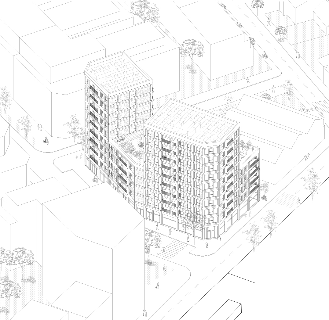 La démarche proposée vise un sourçage ambitieux de réemploi et la préconisation de mises en oeuvre, dont les modes d’assemblage sont réversibles. Ces deux principes se déclinent ainsi pour chaque corps d’état : brique de réemploi en façade montées à la chaux, ossature poteaux-poutre bois suivant une logique d’assemblage mécanique de type Suteki, équipements et revêtements de réemploi, alternatives aux poses collées, etc.