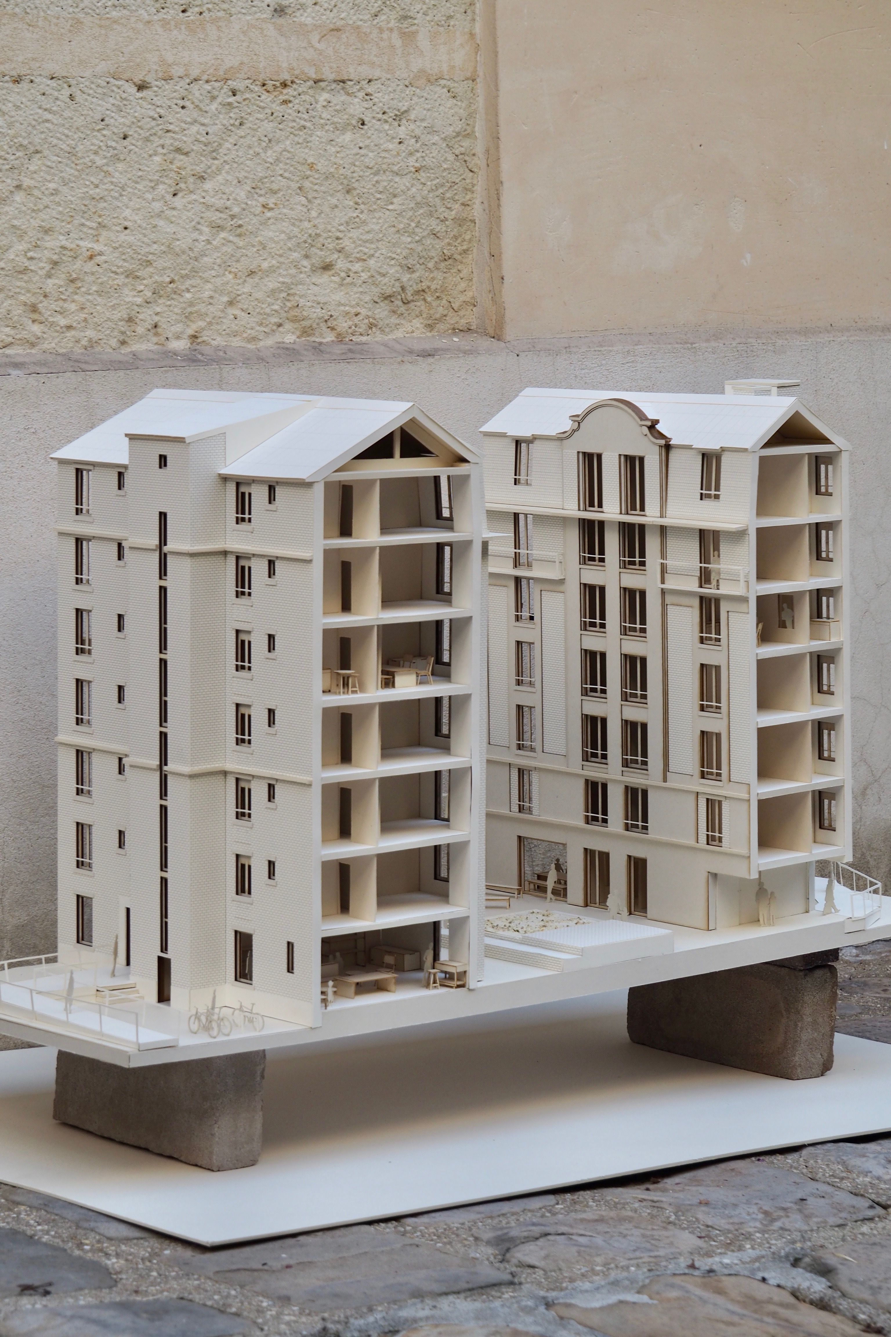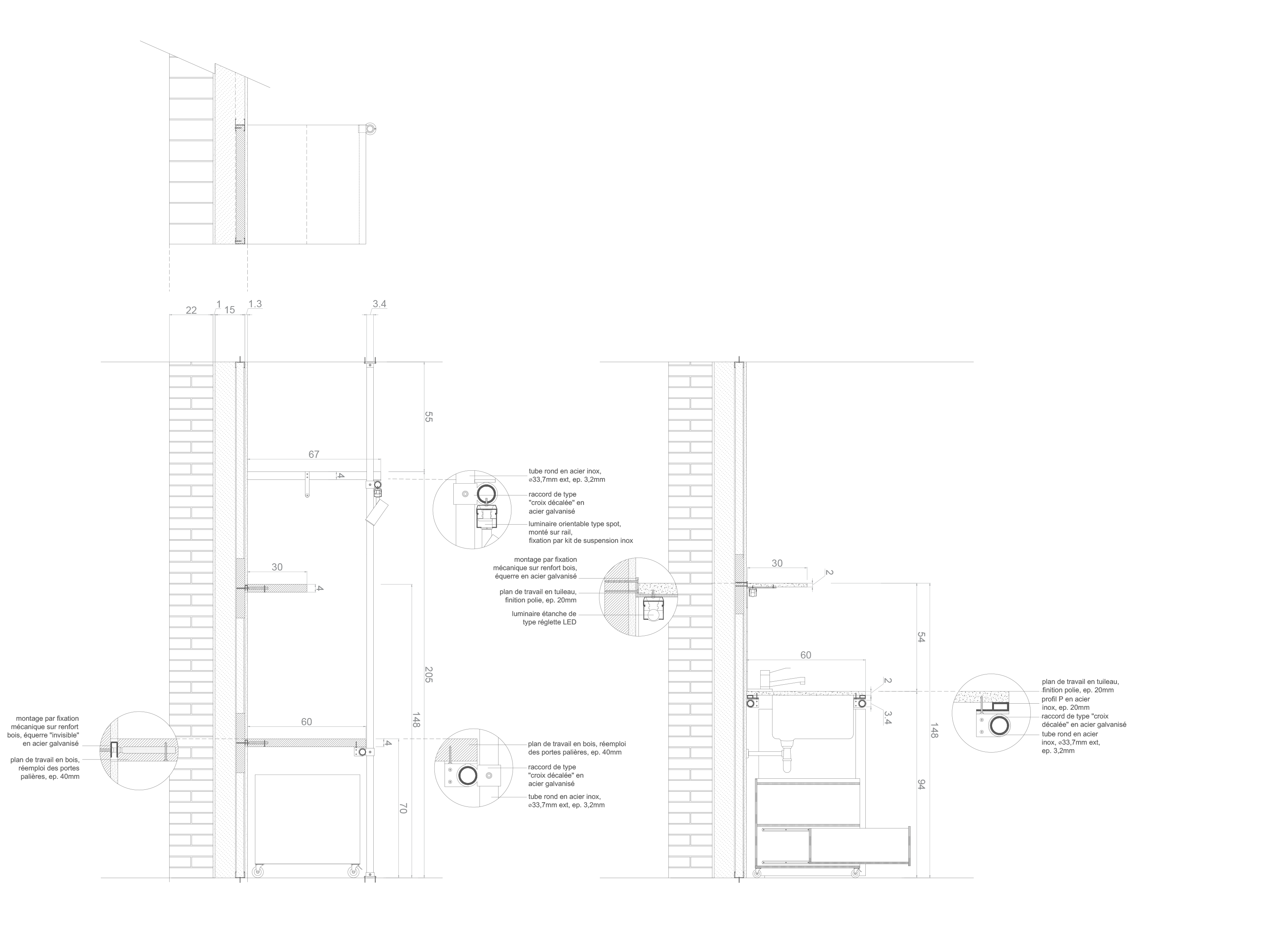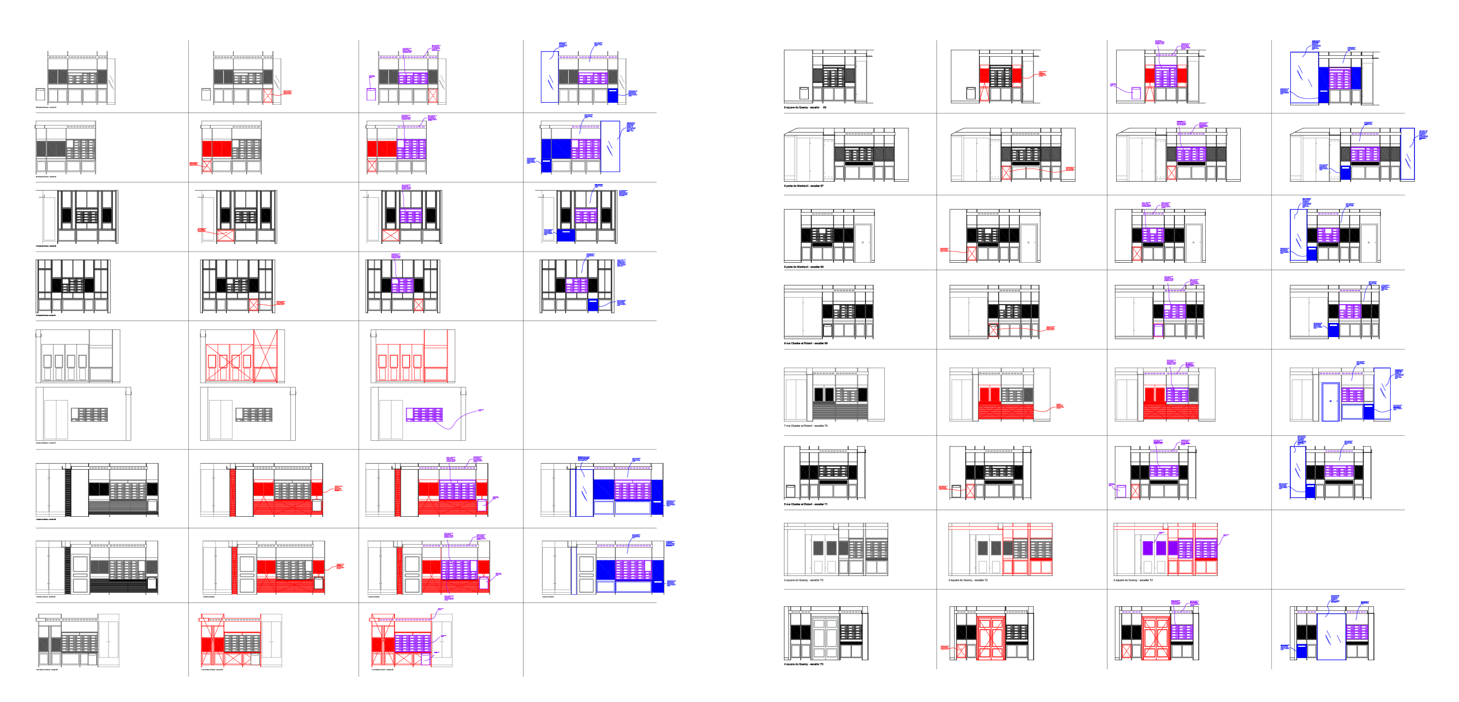 Zerm prend part au groupement et porte avec Septembre une forte ambition de réemploi, doublée d’une volonté de préserver autant que possible l’existant. Cette démarche se traduit par un diagnostic fouillé qui recense les potentiels de la construction et formalise une stratégie d’économie de ressources plébiscitant le réemploi sur site. À ceci s’ajoute une lecture des lieux qui propose d’appréhender avec méthode la grande variété de matériaux et d’époques recensées. Le vocabulaire de la trace et le degré d’harmonisation des espaces se décide à mesure des sondages et relevés. Zerm accompagne ainsi maîtrises d’oeuvre et d’ouvrage dans la définition et l’accomplissement d’un projet qui vise une importante part de réemploi. La participation au projet se traduit également par une série de conceptions et d’aménagements intérieurs : loges des gardiennes, halls d’immeuble, éléments mobiliers, etc. Cette contribution sur le flanc de la prescription, permet d’aboutir la démarche réemploi aux endroits clés du projet.
