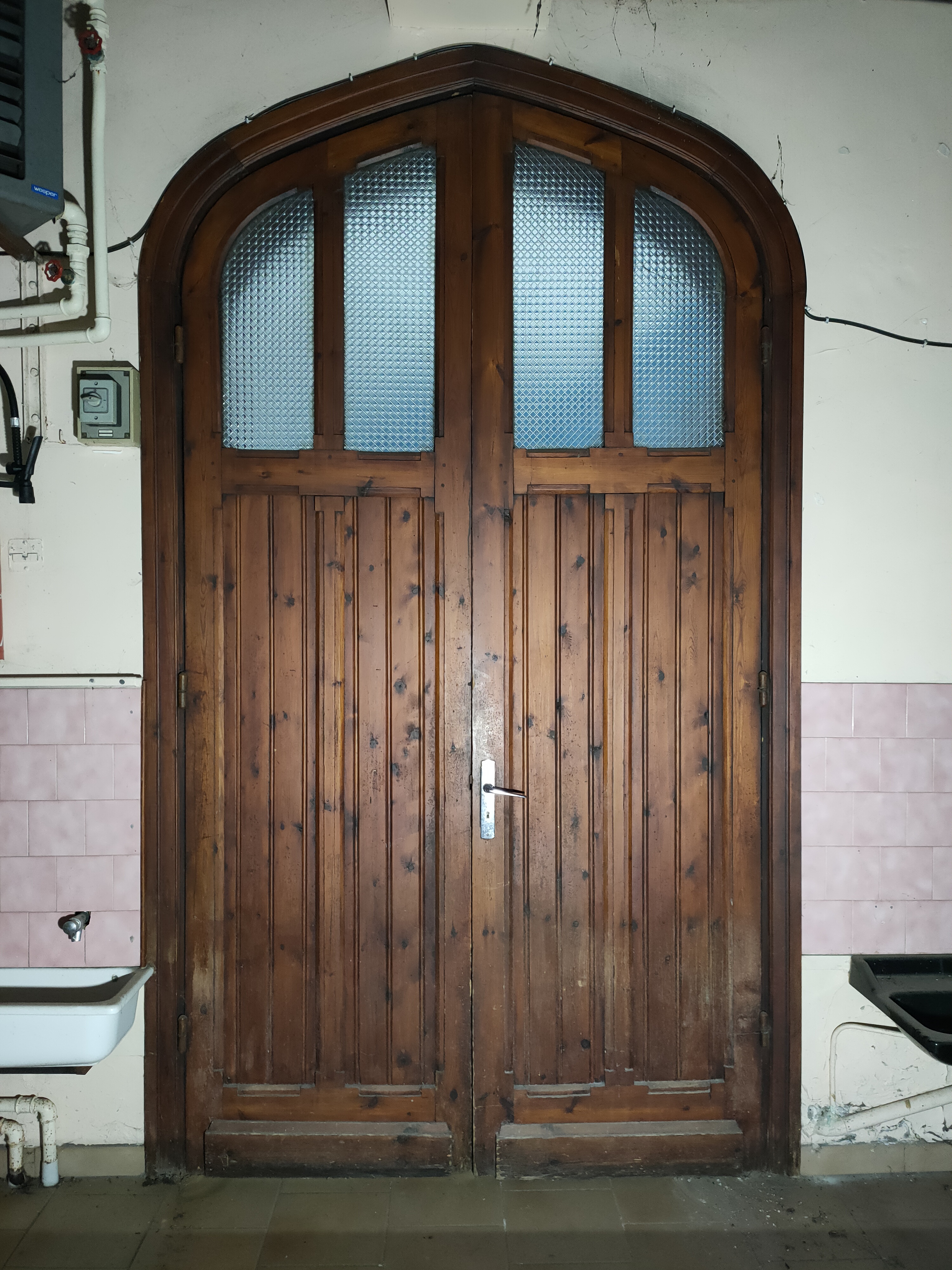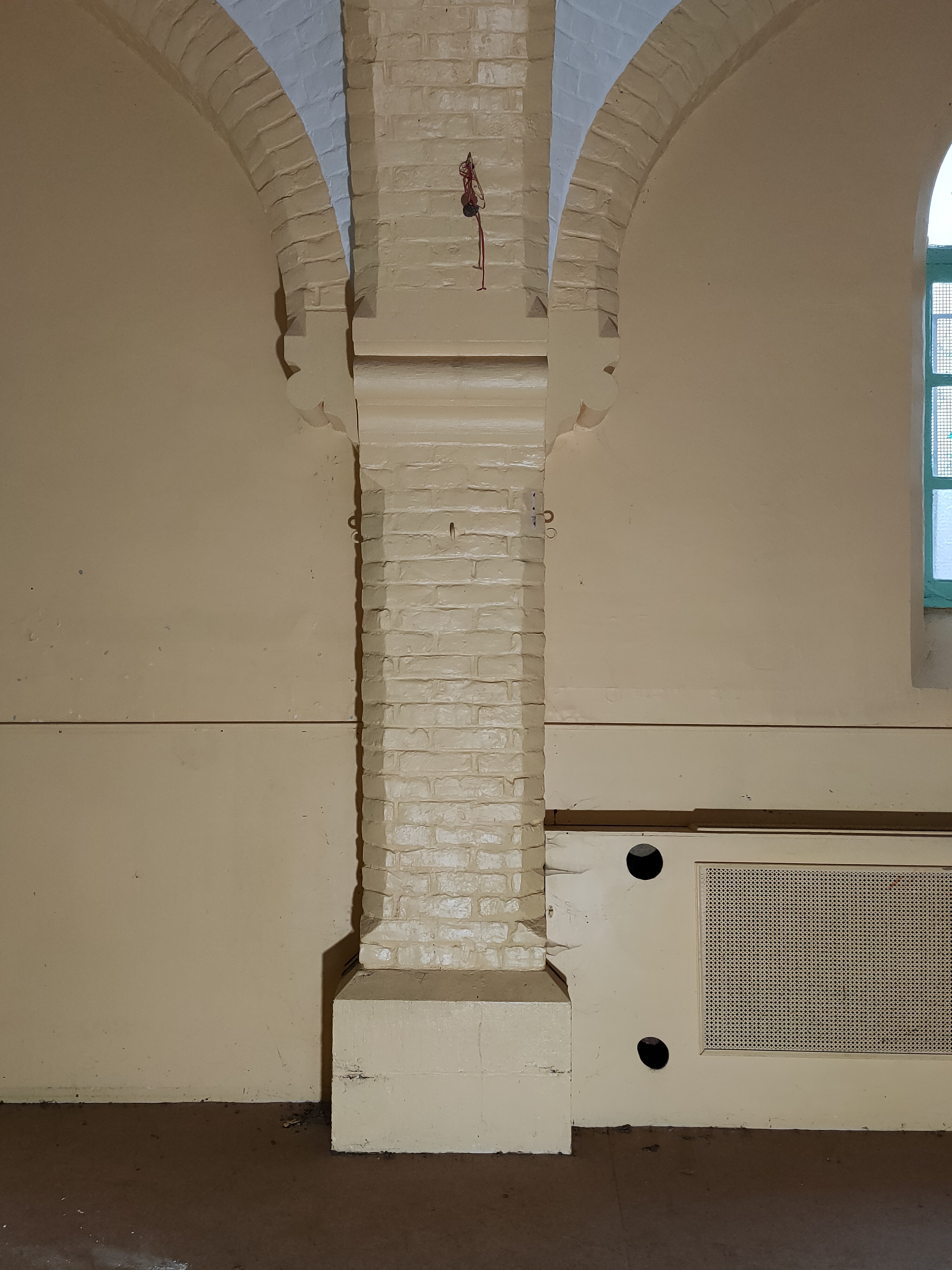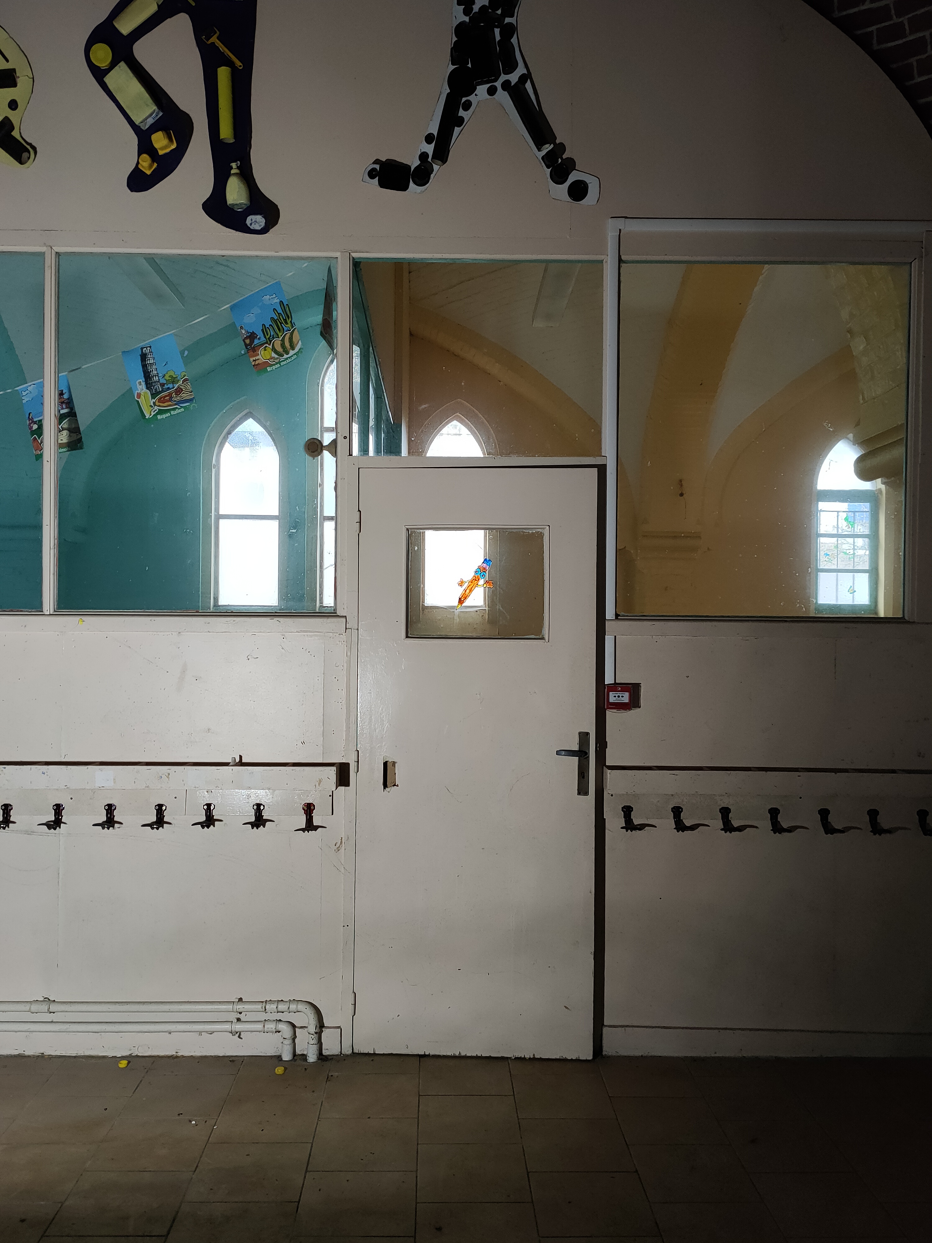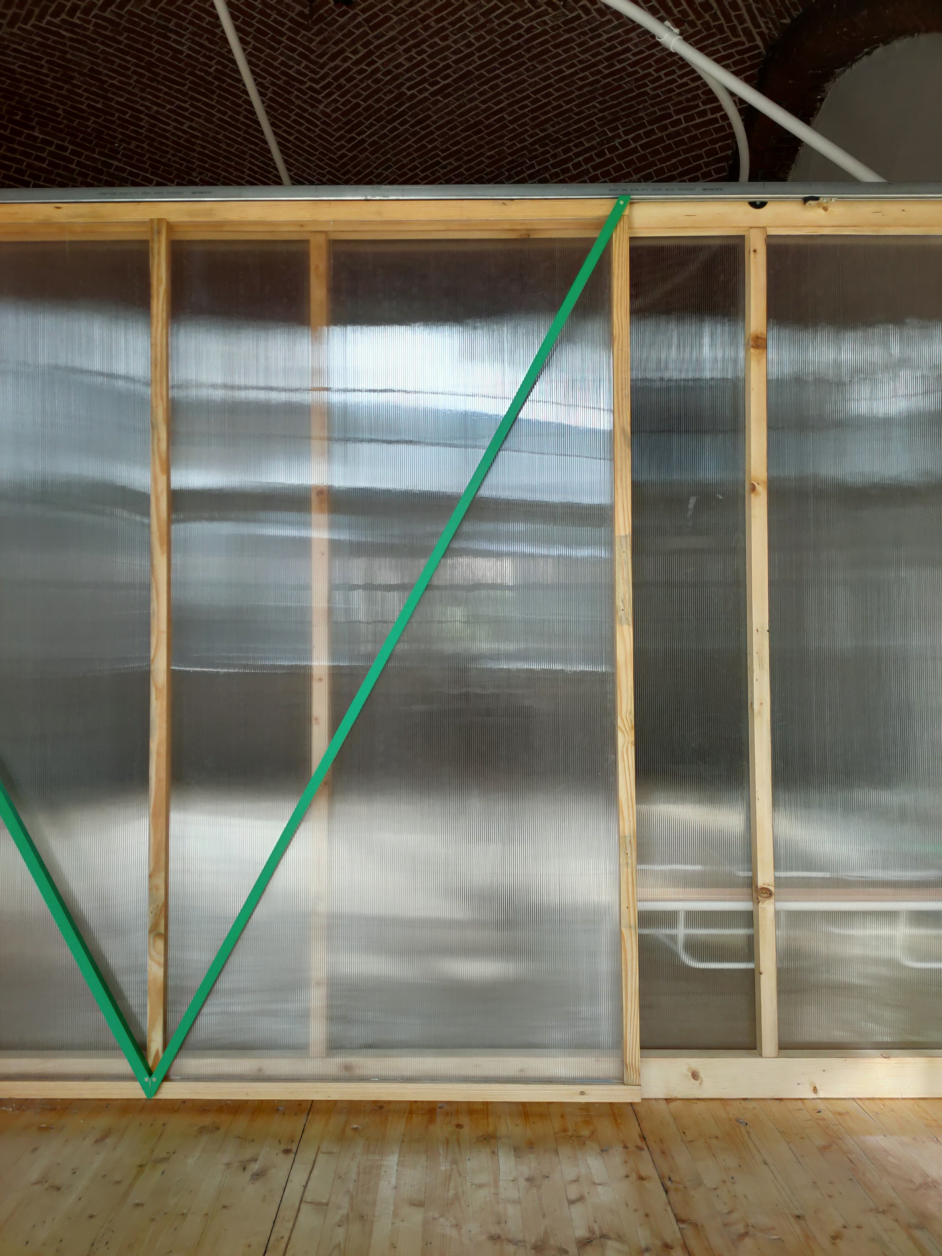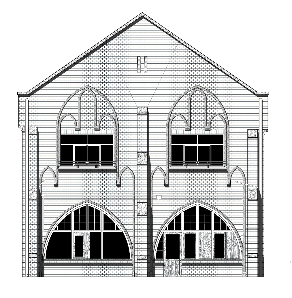 L’aménagement s’appuie sur un curage préalable qui vise à décloisonner les anciennes salles de classes. De grands plateaux sont obtenus, rythmés par un système porteurs en voûtes de briques. Dans le cadre de son inscription au registre des Monuments Historiques, la marge d’intervention sur l’édifice est limitée et invite à composer avec la trace des époques passées. La réhabilitation et les supports de scénographie sont majoritairement pensés en réemploi. Un nouveau revêtement de sol en bois massif, issu de l’Opéra de Lille, est installé. Des cloisons sont déplacées, percées ou construites par anticipation des futures utilisations de la salle. Plusieurs estrades, scènes et socles sont réalisés à partir de système d’assemblage réversibles et démontables empruntés au collectif Open Structures. Un gril technique, fait de grands anneaux cintrés puis soudés sur place, permet la suspension des éclairages, projecteurs et autres systèmes de diffusion sonore, autant qu’il sert à la suspension d’œuvres ou la mise au noir de sous-espaces.